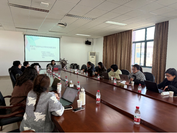 12月9日下午,法社学院第八期应用型学科建设科研工作坊于5J-502顺利开展。本次工作坊以“社会工作学术论文写作的关键性要素”为主题,特邀中国社会工作学会副会长、上海市社会工作者协会会长、华东理工大学社会与公共管理学院博士生导师范斌教授担任主讲人,法社学院院长邵培樟教授主持,社会工作系全体教师及本部社会工作硕士研究生参与。