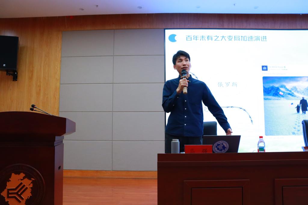 讲座伊始,马强老师从现代时代坐标和百年变局实境切入,用宏观视野看待、详实数据说话,为师生勾勒世界格局与中国发展的深刻变革。他指出,发达国家经济总量占全球比重下降,而新兴市场与发展中国家占比上升,工业革命以来,西方优势加速重构,以中国为首的发展中国家已然成为推动全球格局变化的关键变量。