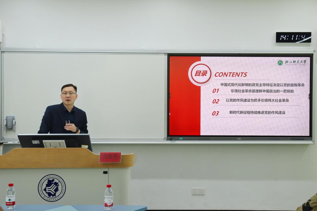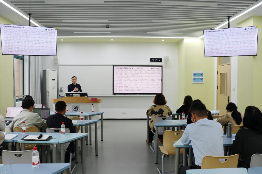 为深入学习贯彻中央八项规定精神,认真落实党的二十届三中全会、党的二十届四中全会部署要求,从党的百年奋斗历程中汲取作风建设智慧,进一步推动新时代党的作风建设走深走实,2026年4月28日,马克思主义学院联合组宣部举办“汲取历史智慧,助力党的作风建设启新程”主题沙龙活动,思政教研室教师、各单位组织员、党支部书记代表参加活动。本次沙龙特邀浙江师范大学马克思主义学院学术副院长、副教授,中共党史党建研究中心副主任,中国人民大学博士、南京大学博士后郑海祥老师作专题分享。